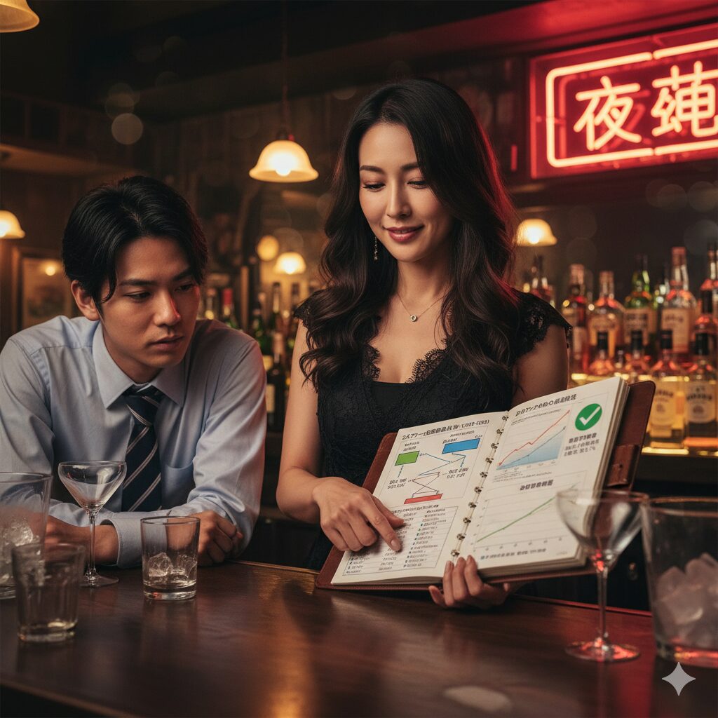 美咲ママは、艶やかな笑みを浮かべながら、手際よくカクテルを作り始める。その知的な眼差しは、競馬新聞の文字を追う祐一を捉えていた。